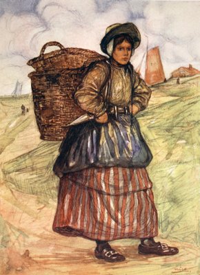 korb · arbeiter · tracht · niederlande · holland · holländer · tracht · arbeiter · arbeit · Küste · Private Collection / Bridgeman Images