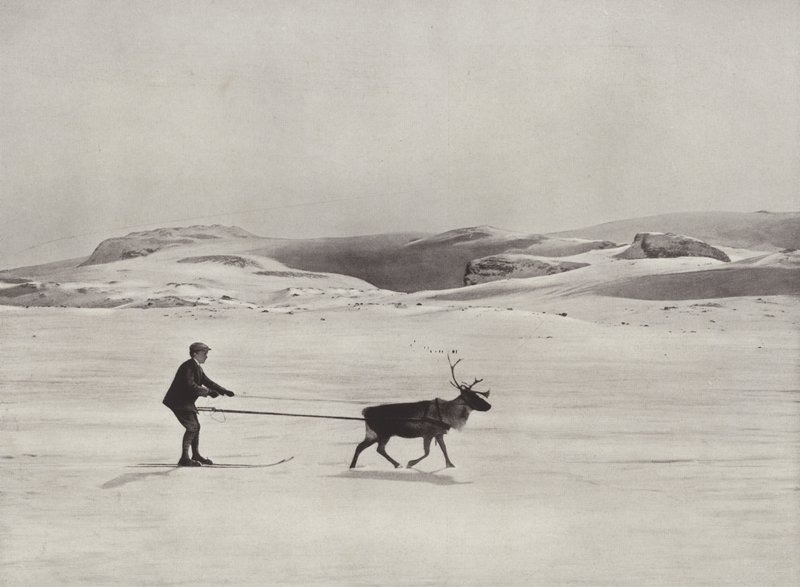 norwegen · norwegisch · skifahren · rentier · berge · skifahren · winter · sport · ungewöhnlich · Private Collection / Bridgeman Images · / Look and Learn |