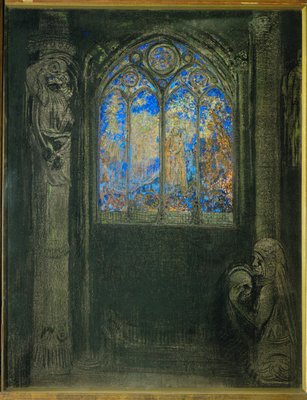 architekturdarstellung · christentum · fenster · französische · kunst · gebet · glasfenster · grabkapelle · interieur · kapelle · kirche · kirche · kunst · religion · symbolismus · geographie · frankreich · technik · grafik · handzeichnung · malerei · pastell · pastell · papier · zeichnung · Kirchenfenster · Paris, Musée D’orsay / akg-images