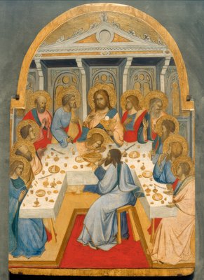 Das letzte Abendmahl, Detail des Polyptychons von Santa Chiara(The Last Supper, detail of the polyptic of Santa Chiara (oil on wood, circa 1350))Paolo Veneziano |