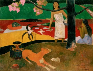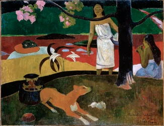 natur · tier · baum · frau · frauen · frau · leute · sitting · blume · blumen · betrieb · künste · anstrich · land · niederlassung · französisch · frankreich · hund · kunst · farbe · farbe · polinesien · polynesisch · position · jahrhundert · pazifische inseln · tahiti · dame · impressionist · tahitian · 19. jahrhundert · impressionismus · 19.jahrhundert · paul gauguin · gaugin · eugène-henri-paul gauguin · gauguin · paul · the art collector · The Art Collector/Heritage-Images