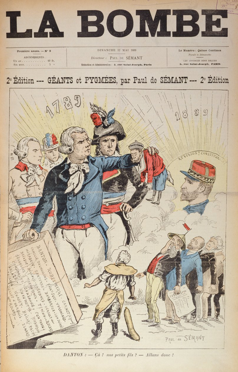 Die Riesen der Revolution von 1789 vor den Zwergen der Republik von 1889, Titelseite des Magazins 'La Bombe', 12. Mai 1889(The Giants of the 1789 Revolution before the Pygmies of the 1889 Republic, front cover of 'La Bombe' magazine, 12th May 1889 )Paul de Semant |