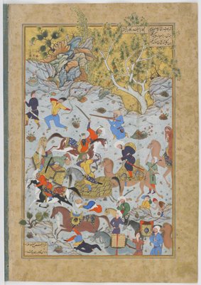 Codrington MS (Nr. 249A). Eine Kampfszene, aus dem Iskandar-nama von Nizami, um 1525