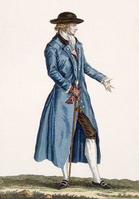 Herr im blauen Mantel, Platte aus 'Galeries des Modes et Costumes Francais', ca. 1778-87(Gentleman in blue coat, plate from 'Galeries des Modes et Costumes Francais', c.1778-87 )Pierre Thomas Le Clerc |