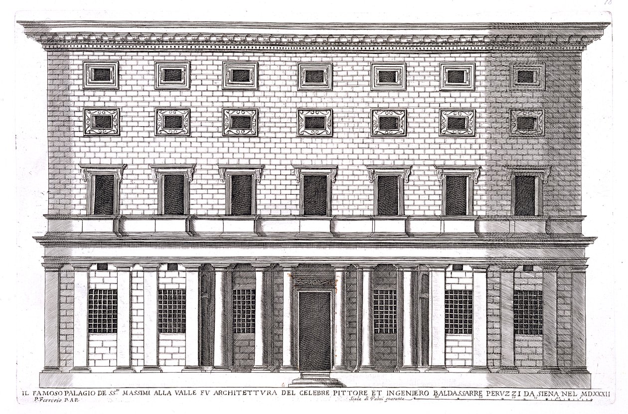 Ansicht der Fassade des Palazzo Massimi alla Valle, Rom, entworfen von Baldassarre Peruzzi (1481-1536) im Jahr 1532(View of the facade of Palazzo Massimi alla Valle, Rome, designed by Baldassarre Peruzzi (1481-1536) in 1532 )Pietro Ferrerio |