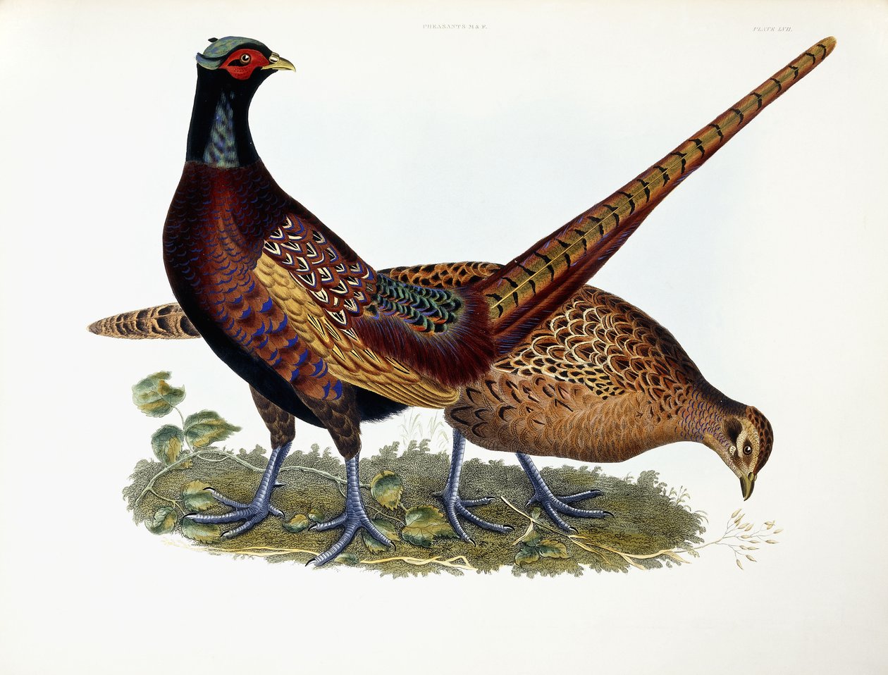 künstler britisch · im freien · neunzehntes jahrhundert · tageszeit · nahaufnahme · handkoloriert · englische kunst · zwei tiere · keine person · druck · handgetönt · tierthemen · tiermotiv · weißer hintergrund · menschliche Ähnlichkeit · nahaufnahme · hand färbung · mitte des 19. jahrhunderts · außen · 1840er jahre · stehend · illustrator · hintergrund · boden · tagsüber · zeichnung · europäisch · männliches tier · nahaufnahme · farbe · handkoloriert · bunt · europäischer künstler · niemand · handkoloriert · haltung · natürlich geschichte · 19. jahrhundert · drucke · handkoloriert · fasan · darstellung · schwanzfeder · britisch · menschlich · draußen · künstler europäisch · tier · illustriert · mitte des 19. jahrhunderts · ornithologie · bunt · rückblick · blick · britischer künstler · niemand · männlich · handkoloriert · keine menschen · handkoloriert · handkoloriert · englischer künstler · vogel · graviert · gravur · farbe · weibliche Ähnlichkeit · handfärbung · illustration · gefieder · prideaux john selby · gamebird · Selby · Private Collection / Bridgeman Images