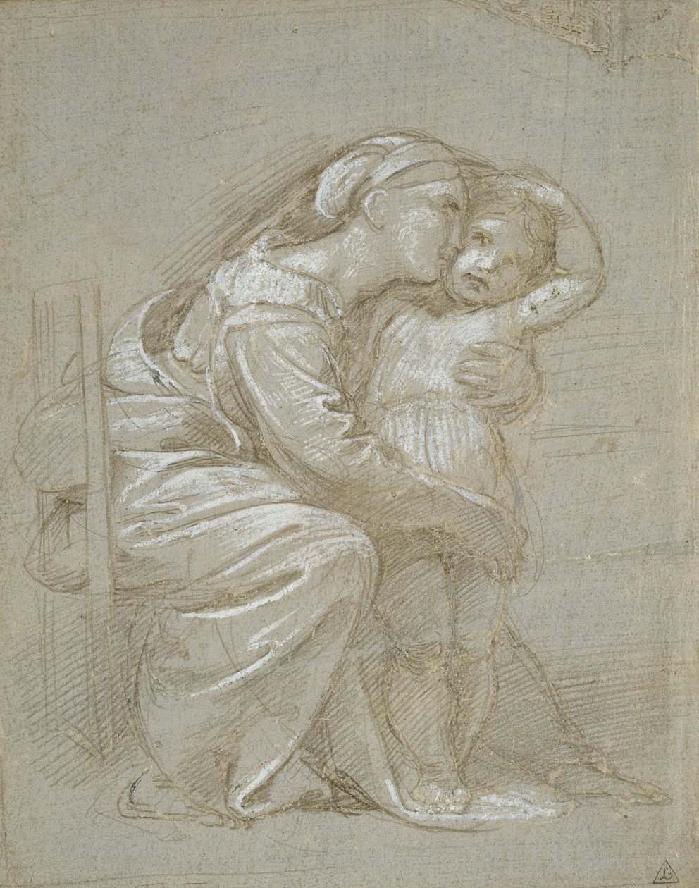 western art · hochrenaissance · 16. jahrhundert · zeichnung · jungfrau maria · madonna · jesus · christus · baby · kind · liebe · sitz · stuhl · mutterschaft · mutterschaft · Ashmolean Museum, University of Oxford, UK / Bridgeman Images