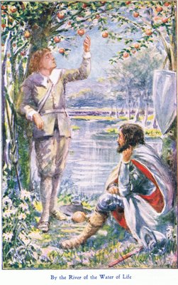 Am Fluss des Wassers des Lebens, aus 'The Pilgrims Progress' veröffentlicht von John F Shaw & Co, ca. 1900(By the River of the Water of Life, from The Pilgrims Progress published by John F Shaw & Co, c.1900's (colour litho))Robert Ambrose Dudley |