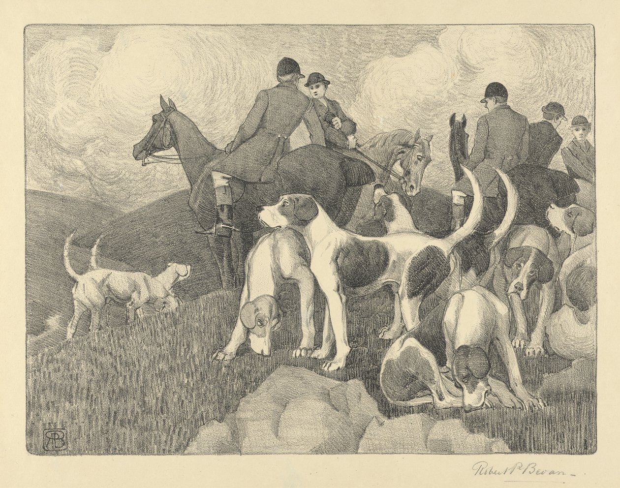 fuchsjagd · fuchsjagd · pferd · pferd · sammeln · hund · hunde · fuchshunde · jagdhund · einfarbig · jäger · bäuerlich · landschaft · sport · sport · landverfolgung · zeichnung · Yale Center for British Art, Paul Mellon Collection, USA / Bridgeman Images