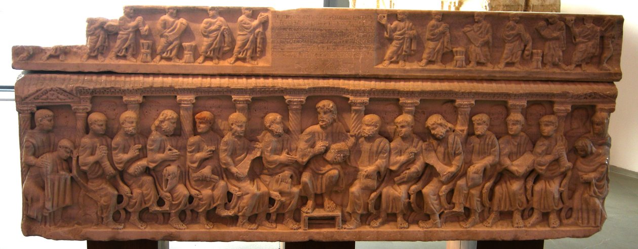 Sarkophag des Bischofs Concordius, Christus und die Apostel, 380-90 n. Chr.(Sarcophagus of bishop Concordius, Christ and the apostles, 380-90 AD )Roman |
