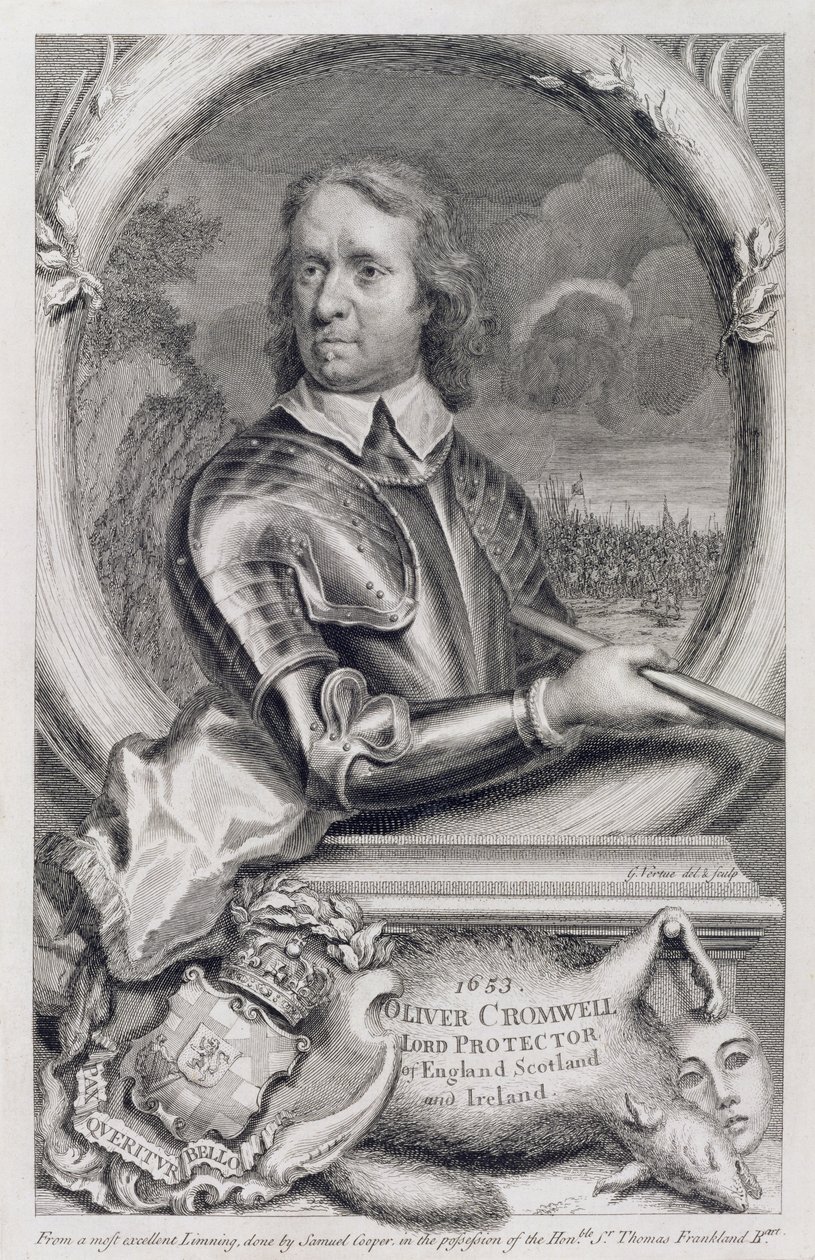 Oliver Cromwell (1599-1658) Lordprotektor von England, Schottland und Irland im Jahr 1653, graviert von George Vertue (1684-1756)(Oliver Cromwell (1599-1658) Lord Protector of England, Scotland and Ireland in 1653, engraved by George Vertue (1684-1756) )Samuel Cooper |