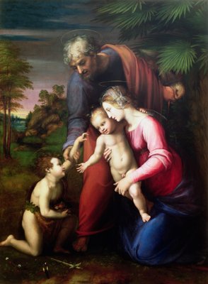 Heilige Familie mit dem jungen Johannes dem Täufer(Holy Family with young John Baptist (painting on poplar wood))Sanzio of Urbino (workshop) Raphael |