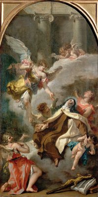 (The Vision of Saint Teresa of Avila (1515-1582) - Sebastiano Ricci (1659-1734). Oil on canvas, ca 1728. Dimension : 71,5x37 cm. Art History Museum, Vienne)