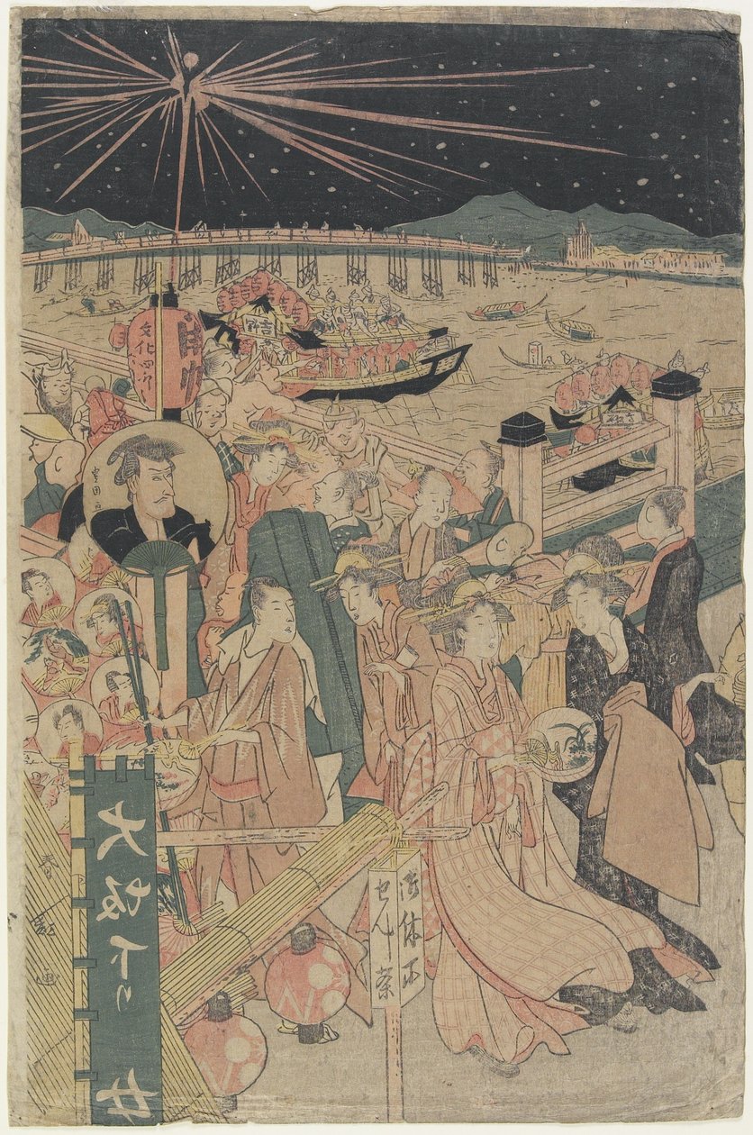 boot · schlepper · transport · transport · feier · party · festlichkeiten · festlichkeit · festlich · brücke · nacht · frauen · druck · männer · fluss · asien · menge · edo-periode · ereignis · feuerwerk · versammlung · menschen · asiatisch · fest · japan · beleuchtung · blitz · traditionell · strahlen · japanisch · laternen · tokugawa · Minneapolis Institute of Arts, MN, USA / Bridgeman Images |