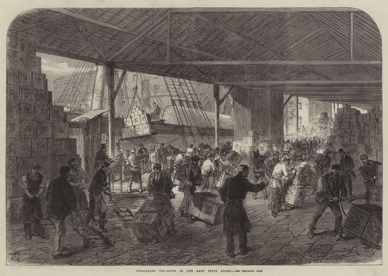 Entladen von Teeschiffen in den East India Docks(Unloading Tea-Ships in the East India Docks )Sir John Charles Robinson |