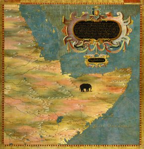 Karte von Ägypten von Stefano Bonsignori (Buonsignori) (gestorben 1589) 1581(Map of Egypt by Stefano Bonsignori (Buonsignori) (died 1589) 1581 Painting of the cabinets of the room of geographic maps. Palazzo Vecchio, Sala del Mappamondo Florence)Stefano Buonsignori |