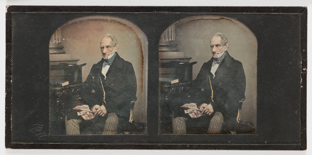 männlich · porträt · älter · elegant · sitzend · nadelstreifenhose · frack · interieur · foto · fototechnik · stereografie · stereoskopische Fotografie · Science Museum, London, UK / Bridgeman Images |
