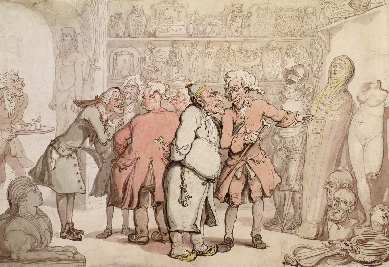 Eine Gruppe von Antiquaren, ca. 1805 (Feder und Tinte mit Aquarell auf Papier)(A Group of Antiquaries, c.1805 (pen und ink with wc on paper))Thomas Rowlandson |