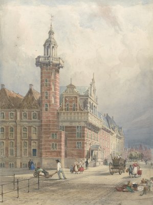 architektur · architektur · holländisch · den haag · holland · roter backstein · turm · alltagsszene · stadthaus · hotel de ville · straße · Yale Center for British Art, Paul Mellon Collection, USA / Bridgeman Images