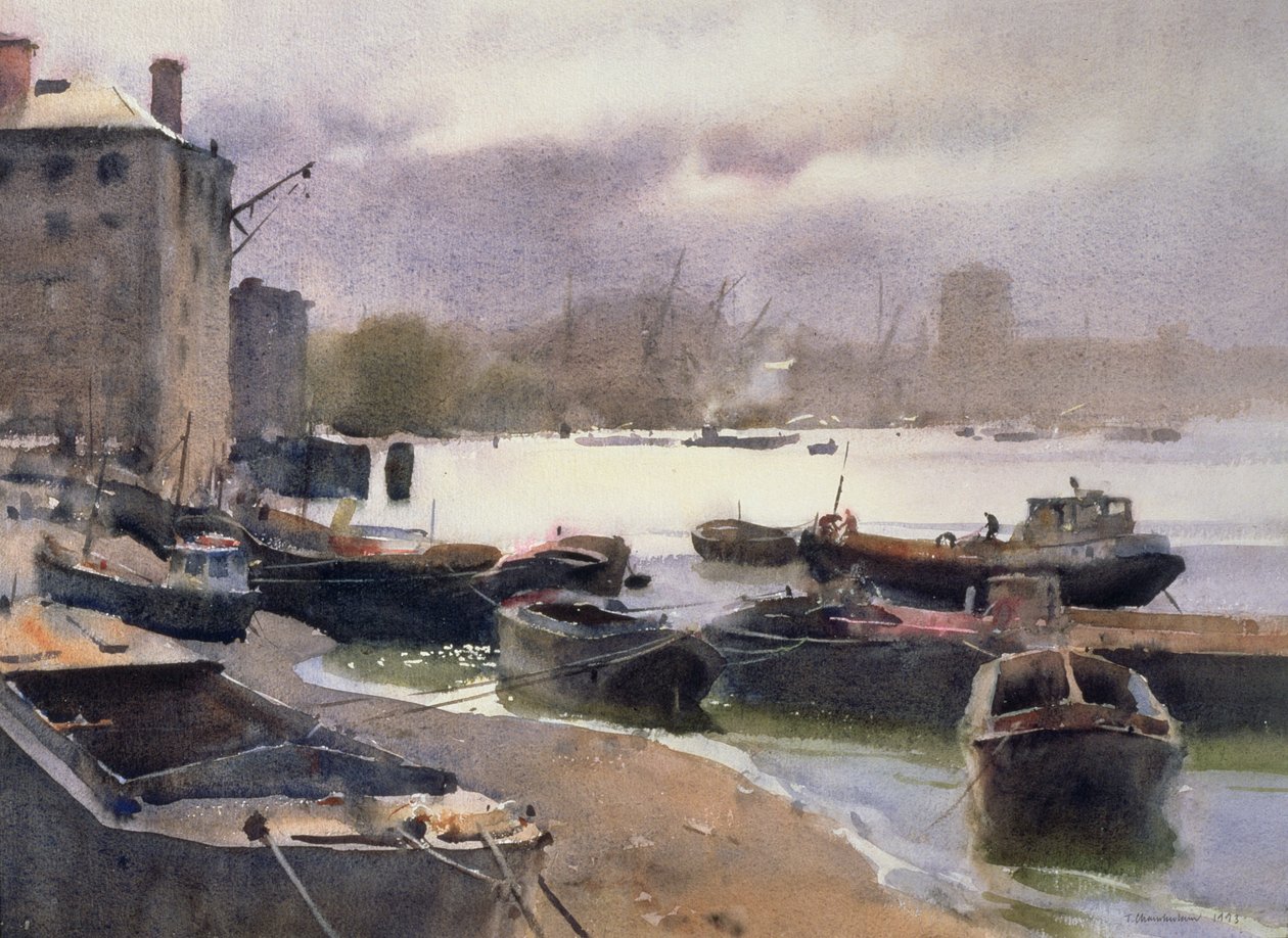 Eine Gruppe von Leichtern, Themse, 1993(A Cluster of Lighters, River Thames, 1993 (wc on paper))Trevor Chamberlain |