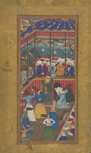 Tänzer und Musiker vor dem Sultan und seinem Hof, aus Sur-Nama(Dancers and musicians before the sultan and his court, from Sur-Nama )Turkish School |