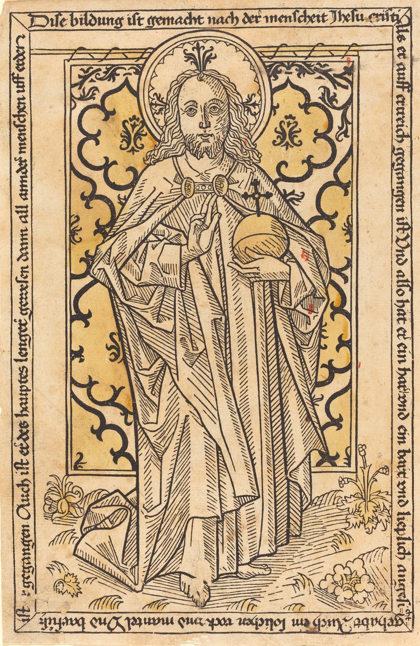 deutschland · leute · mann · mann · männer · fromm · deutsch · künste · land · religion · kunst · kerl · farbe · washington · mittelalterlich · christentum · christ · jesus · jesus christ · position · jahrhundert · galerie · gestikulieren · volle länge · handgeste · in voller länge · hand-abgetönt · kunstgalerie · segen · farbe · kugel · mittelalterlich · mittleres alter · nationale galerie der kunst · hand tönte ab · hand coloured · woodcut · unknown · salvator mundi · saviour of the world · art centre · hand-coloured · heritage art · print · woodcut · hand-colored in yellow and red · Heritage Art/Heritage Images