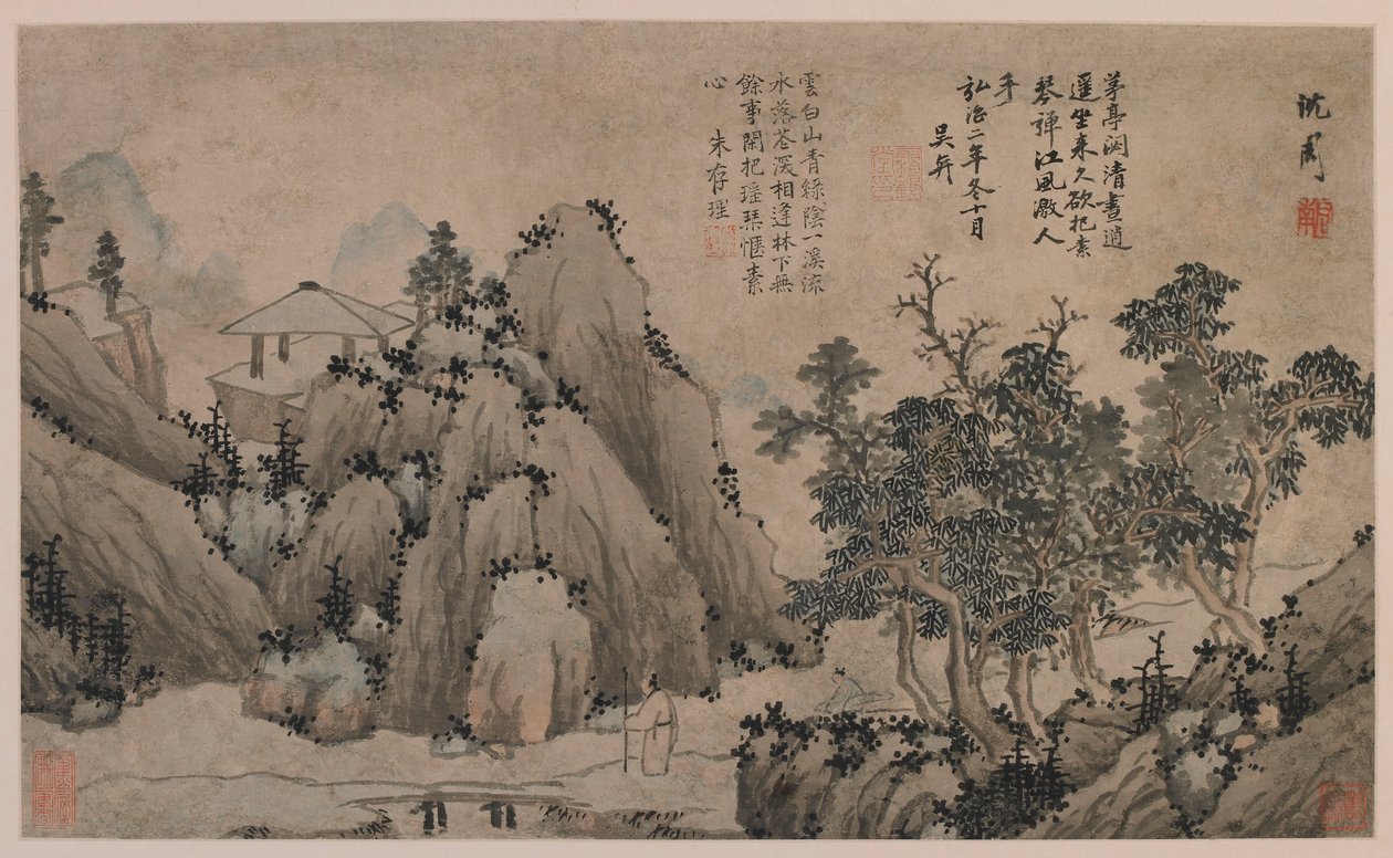natur · fluß · baum · ausbildung · betrieb · betriebe · künste · anstrich · berg · berge · land · china · kunst · chinesisch · brücke · brücken · geographie · farbe · struktur · steg · ming · position · jahrhundert · galerie · tinte · dynastie · ming dynastie · 17. jahrhundert · kunstgalerie · farbe · smithsonian anstalt · pädagogische anstalt · 14. jahrhundert · 16. jahrhundert · vierzehntes jahrhundert · sechzehntes jahrhundert · bäume · landscape · unknown · ink on paper · freer gallery of art · art centre · painting · heritage art · ink and color on paper · album · shen zhou · zhou · shen · arthur m. sackler gallery · Heritage Art/Heritage Images
