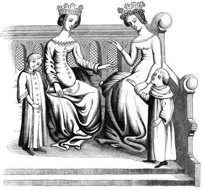 frau · frauen · frau · leute · kind · kinder · familie · sitting · mutter · mutterschaft · jahrhundert · krone · dame · einfarbig · stich · mama · 19. jahrhundert · schwarzes u. weiß · schwarzes und weiß · 14. jahrhundert · vierzehntes jahrhundert · 19.jahrhundert · a rivaud · engraving · unknown · ferdinand · paul · paul lacroix · lacroix · rivaud · ferdinand sere · sere · The Print Collector/Heritage Images