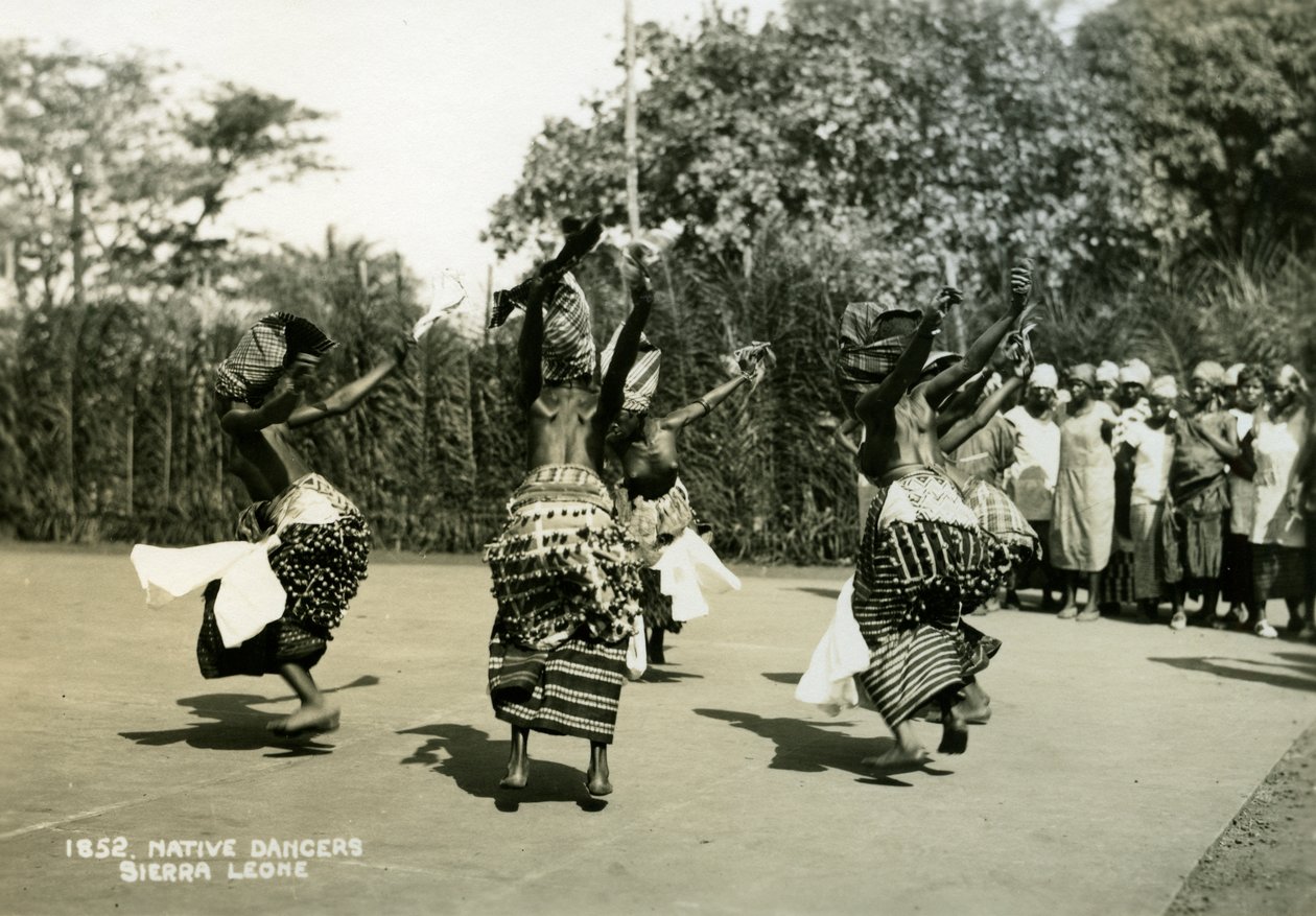 natur · afrika · stehen · baum · frau · frauen · frau · leute · betrieb · tanz · publikum · kostüm · tanzen · aufpassen · kontinent · kleidung · headdress · tänzer · afrikanisch · leistung · kleid · ausführender · durchführen · position · jahrhundert · rock · dame · sierra leone · kopfbedeckung · einfarbig · schwarzes u. weiß · schwarzes und weiß · 20. jahrhundert · photograph · unknown · The Print Collector/Heritage Images |