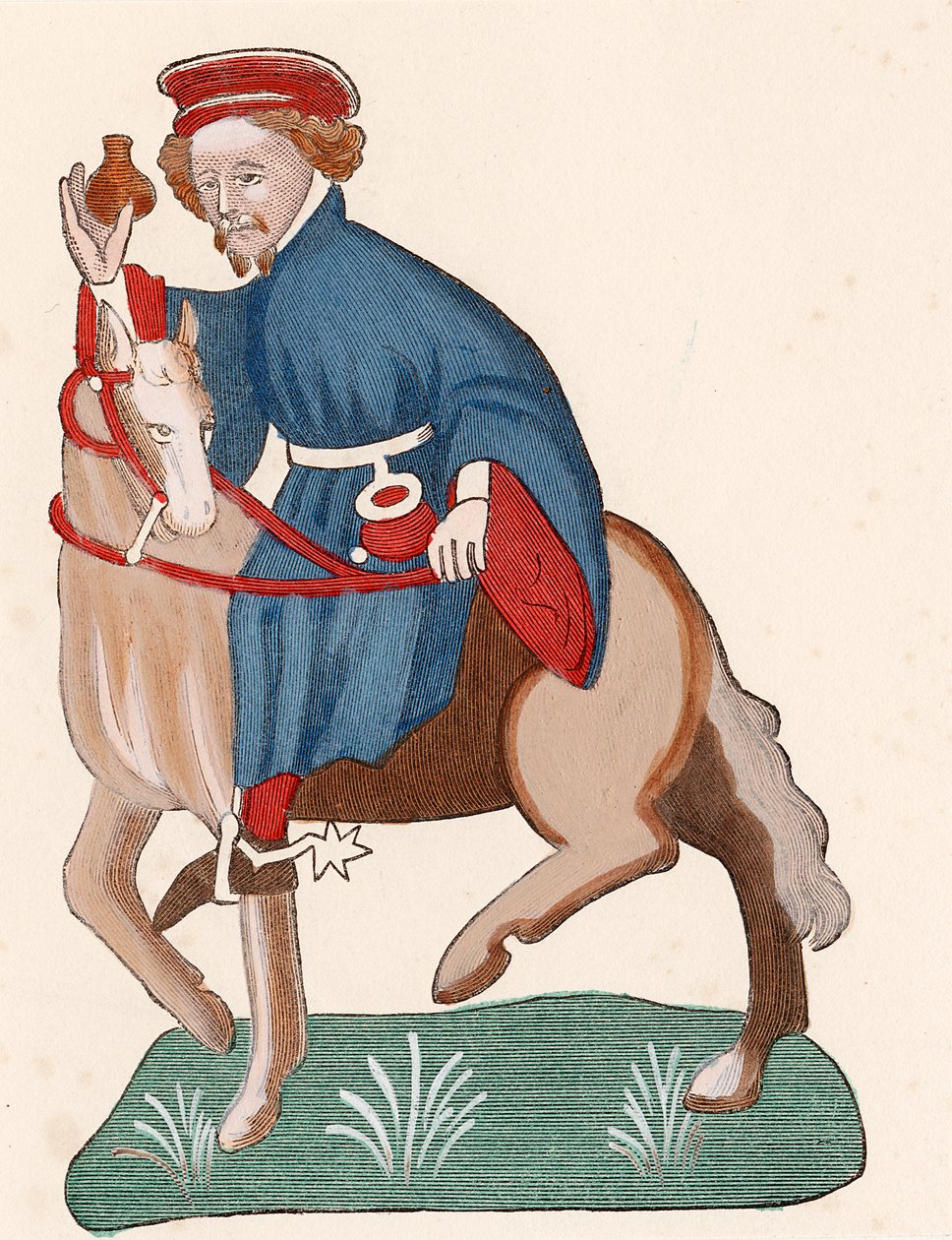 tier · england · leute · mann · mann · männer · tiere · pferde · pferd · reiten · mitfahrer · art und weise · künste · land · kerl · besetzung · flaschen · britisch · englisch · farbe · farbe · mittelalterlich · kleid · flasche · position · jahrhundert · großbritannien · beruf · literatur · poesie · mittelalterlich · mittleres alter · 14. jahrhundert · vierzehntes jahrhundert · ann ronan pictures · unknown · geoffrey chaucer · chaucer · geoffrey · Ann Ronan Picture Library/Heritage-Images |