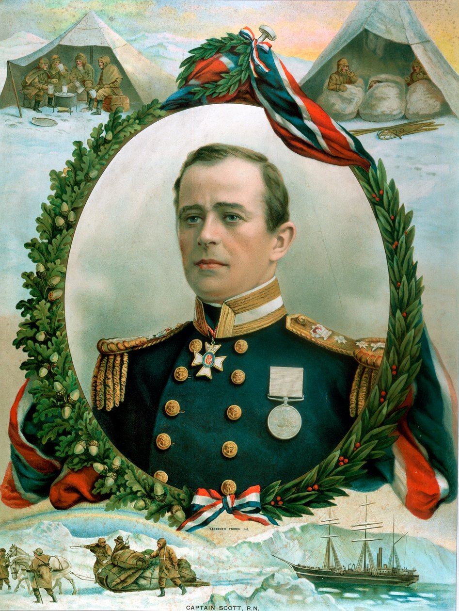 transport · transport · tier · leute · mann · mann · männer · kalt · hund · antarktisch · erforschung · kerl · ausfall · schiff · schiffe · britisch · antarktik · polar · farbe · farbe · überleben · dekoration · krieg · zelt · zelte · unfall · jahrhundert · großbritannien · katastrophe · schlitten · forscher · expedition · konzept · medaille · medaillen · marine · held · schlitten · schlafsack · heroisch · kriegsführung · ausgefallen · straße transport · heroism · marinekriegsführung · wassertransport · 1910s · 20. jahrhundert · terra nova · oxford science archive · robert falcon scott · lithograph · portrait · calendar · unknown · scott · captain robert falcon · robert falcon · captain scott · Oxford Science Archive/Heritage Images