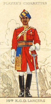außen · draußen · military uniforms of the british empire overseas · 19th kgo lancers · 19th lancers · pakistan army · stehen · leute · mann · mann · männer · künste · land · stolz · stolz · buch · kerl · kleidung · britisch · waffe · waffen · headdress · farbe · golden · aufladungen · kleid · gold · turban · turbans · militärisch · krieg · text · position · bewaffnete kräfte · jahrhundert · kolonial · schärpe · klinge · großbritannien · jacke · dreißiger jahre · literatur · pakistan · klingen · konzept · imperial · eine person · pakistanisch · beschriftung · kopfbedeckung · armee · kriegsführung · betitelt · farbe · regiment · militärische uniform · großbuchstabe · kampfmittel · dreißiger jahre · 20. jahrhundert · indian army · gold colour · unknown · cigarette card · john player sons · player · british india · john sons · The Print Collector/Heritage Images