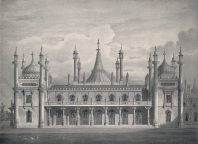 außen · draußen · gebäude · gebäude · england · fromm · architektur · moschee · exotisch · religion · britisch · haube · hauben · palast · islam · islamisch · minarett · minaretts · jahrhundert · architektonisch · großbritannien · dreißiger jahre · brighton · konzept · draußen · einfarbig · landhaus · prächtiges haus · ostsussex · königlicher pavillion · 19. jahrhundert · königlicher wohnsitz · schwarzes u. weiß · schwarzes und weiß · dreißiger jahre · der königliche pavillion · 20. jahrhundert · 19.jahrhundert · zwiebel haube · king of great britain · prince of wales · landscape · indo-saracenic · unknown · john · king george iv · george iv · prince of wales · prince regent · prinny · prinnie · roberts · john nash · nash · george · domed · george iv of the united kingdom · henry d roberts · henry d · henry d. roberts · henry d. · The Print Collector/Heritage Images