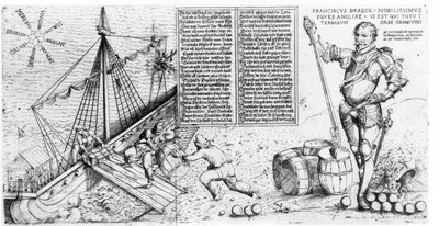 deutschland · portrait · drake · renaissance · anonym · galleon · pirat · piraten · graphische künste · piratenschiff · seeräuber · piraterie · francis drake · etching · portrait · anonymous · private collection · corsairs · privateers · ca 1588 · Fine Art Images/Heritage Images