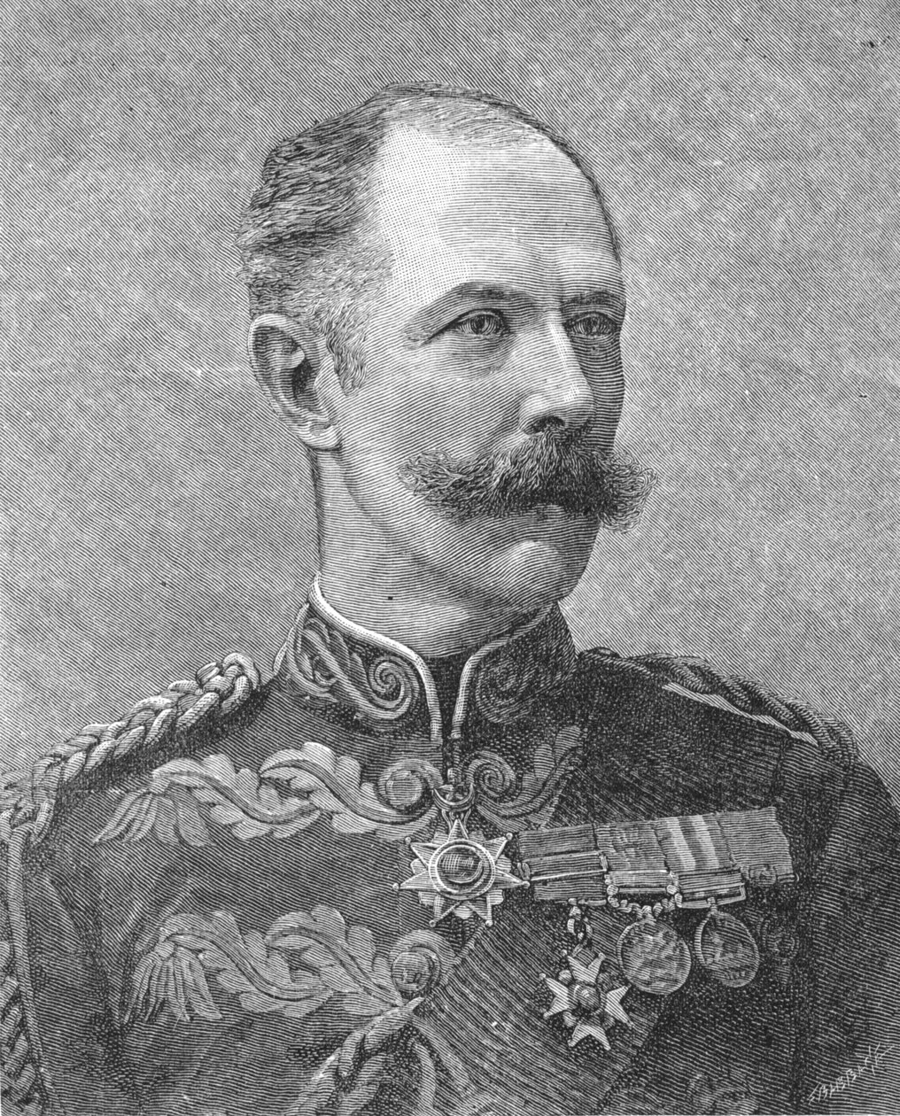 leute · mann · gesicht · mann · männer · künste · körper · buch · kerl · britisch · militärisch · krieg · jahrhundert · kolonial · großbritannien · schnurrbart · offizier · soldaten · soldat · literatur · konzept · medaille · medaillen · eine person · weg schauen · einfarbig · armee · kriegsführung · militärische uniform · 19. jahrhundert · schwarzes u. weiß · schwarzes und weiß · britische armee · 19.jahrhundert · sir herbert stewart · james · engraving · portrait · unknown · herbert · stewart · sir herbert · herbert stewart · grant · cassell · petter galpin · british battles on land and sea · james grant · cassell petter galpin · mahdist war · sudan campaign · mr chancellor · chancellor · mr · The Print Collector/Heritage Images