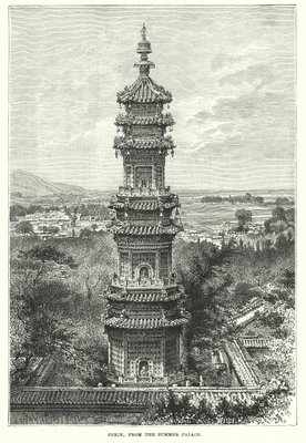 außen · stadt · gebäude · gebäude · architektur · land · aufsatz · china · beijing · peking · palast · position · jahrhundert · sommer-palast · draußen · einfarbig · 19. jahrhundert · schwarzes u. weiß · schwarzes und weiß · 19.jahrhundert · engraving · landscape · unknown · The Print Collector/Heritage Images