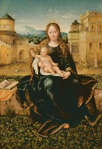 außen · leute · kind · kinder · familie · fromm · sitting · religion · messwert · farbe · farbe · mutter · bank · christentum · mutterschaft · jahrhundert · draußen · mama · öl anstrich · 16. jahrhundert · sechzehntes jahrhundert · jungfrau und kind · virgin mary · jesus christ · mary · portrait · madonna · christ · jesus · jesus · virgin · saint mary · virgin mother · mother of god · the virgin mary · stella maris · st mary · oil on wood · unknown old master · old master · unknown · master · unknown dutch · Fine Art Images/Heritage Images