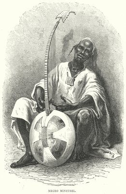 Sambou, der Griot von Niantanso (Mali) (Malinke-Typ: westafrikanische Sprache (Guinea, Senegal, Mali und Côte d'Ivoire), Dichter, Musiker, Historiker und Geschichtenerzähler, Griot ist der Hüter des kollektiven Gedächtnisses eines Volkes. Gravur zur Illust(Sambou, the griot of Niantanso (Mali) (Malinke type: West African language (Guinee, Senegal, Mali and Côte d'Ivoire), poet, musician, historian and storyteller, griot is the depositary of the collective memory of a people. Engravure to illustrate the story)Unknown artist |