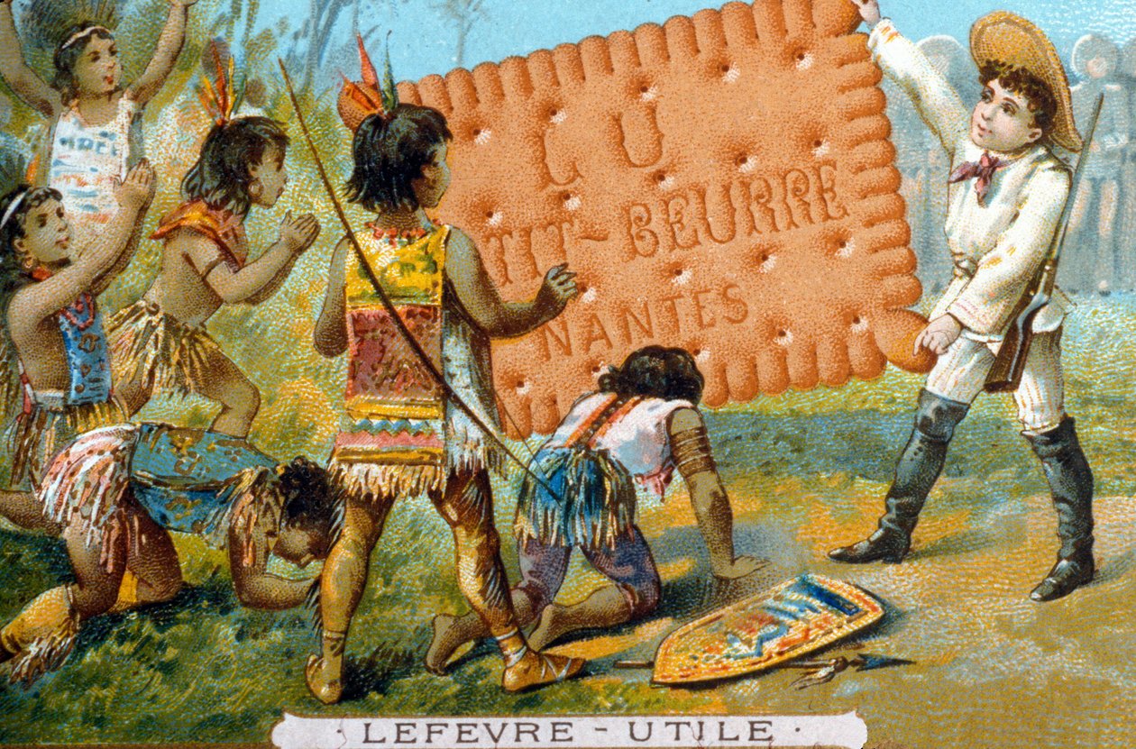 werbung · angebot · zivilisation · kind · kostüm · entdecker · traditionell · essen · gravieren · französisch · loire-land · keks · lichtbogen · gewehr · eingeborener · bewaffnet · bevölkerung · kolonialismus · kindheit · amerikaner · industrie · geschenk · essen · auswurf · niederwerfung · tradition · französisch · amerikanisch · amerikanisch · frankreich · atlantische loire (44) · regionale spezialität · indianer · nordamerika · konditorei · gyssels · Traditionell · - / Bridgeman Images