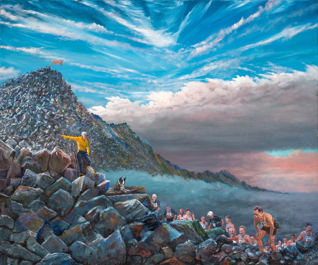kunst · zeitgenössische kunst · farbe · laufen · flagge · mann · berg · malerei · Ölgemälde · wandern · balstudio · mzpainting · fels (stein) · 2020er jahre · 21. jahrhundert · zeitgenössischer künstler · rasse (wettbewerb) · Private Collection / Bridgeman Images |