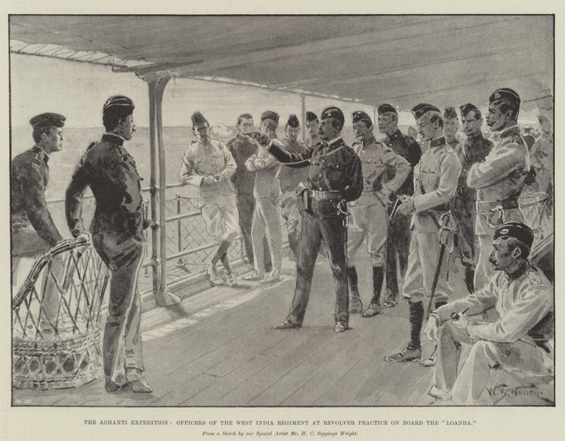 Die Ashanti-Expedition, Offiziere des West India Regiments beim Revolvertraining an Bord der Loanda(The Ashanti Expedition, Officers of the West India Regiment at Revolver Practice on Board the Loanda )William Barnes Wollen |