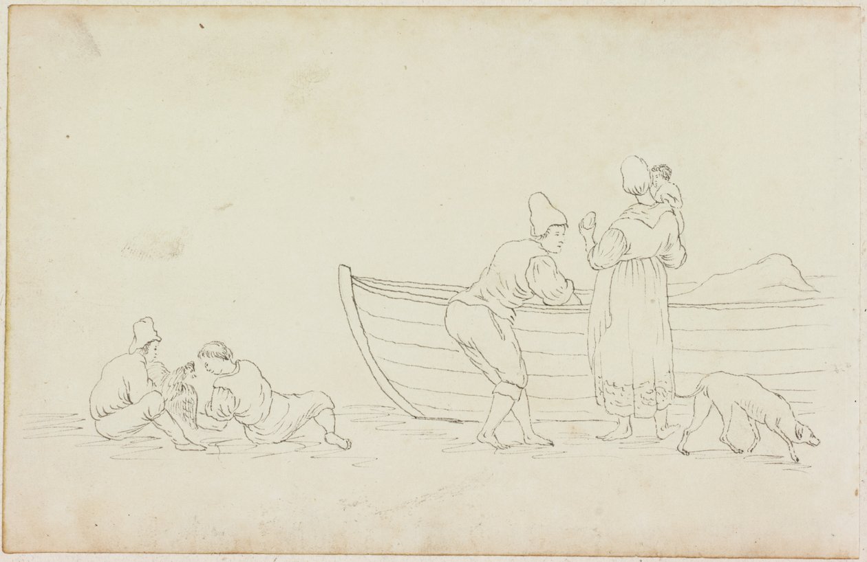Figuren und Hund mit Boot(Figures and Dog with Boat (ink on paper (on paper with M747)))William Beilby |