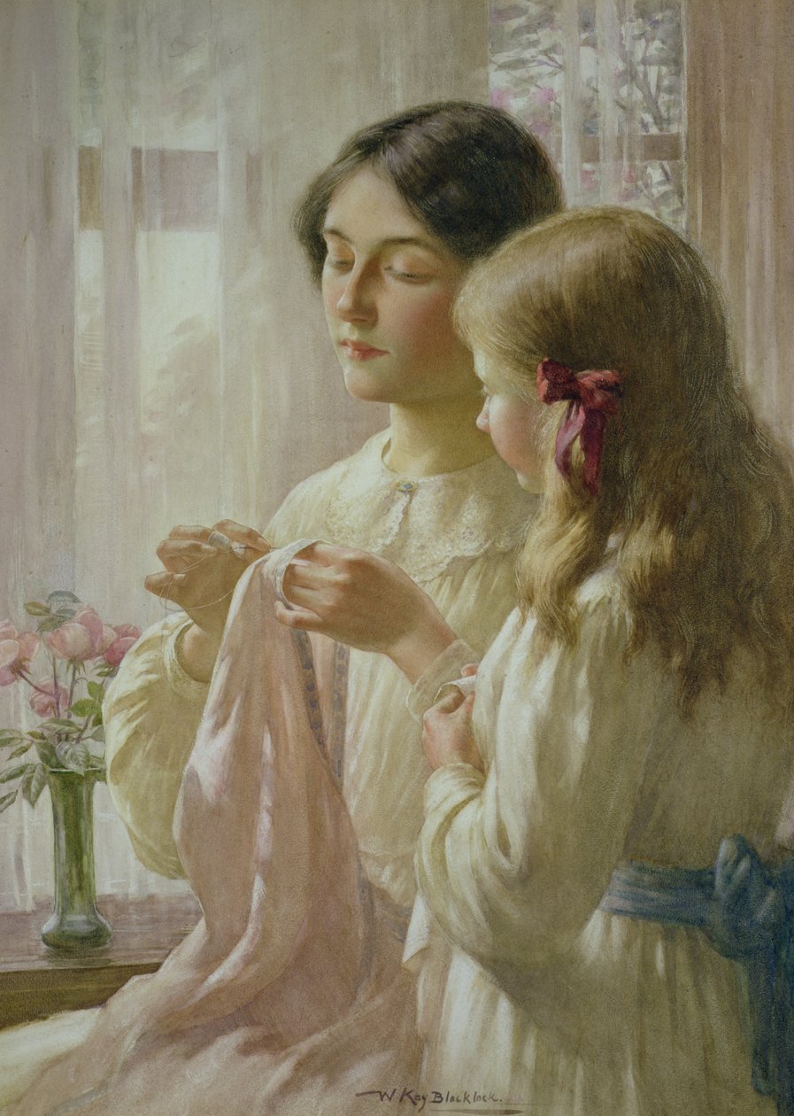 edwardian · weiblich · mädchen · mädchen · handarbeiten · nähen · lernen · bildung · haushalt · interieur · Private Collection / Bridgeman Images |