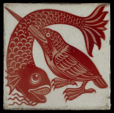 (Tile with Kingfisher with Beak through Fish, 1882-88 (red and white lustreware))