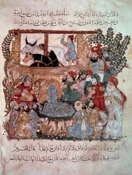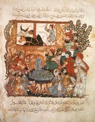 pilgerfahrt · manuskript · alter · arabisch · treffen · jung · al maqama · montage · kunst · abou zayd · jahrhundert · historisch · enluminure · historisch · pilger · manuskript · mittelalterlich · die treffen · mitte · beleuchtung · jugend · moyen -alter · picaresque · pilger · frühling · stadt · siekel · kalligraphie · versammlungen · islamisch · alter · kalligraphie · tore · abu zayd · farbe · beleuchtet · brunnen · hajj · xiiie · maqama · moyen · xiiith · 13e · maqamat · Bibliotheque Nationale, Paris, France / Bridgeman Images