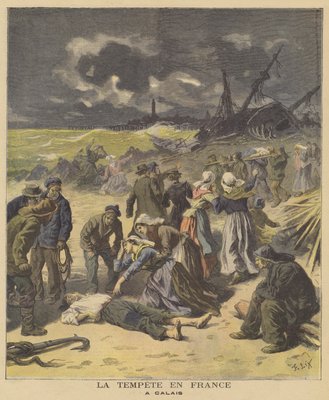 19. jahrhundert · frankreich · französisch · calais · naturkatastrophe · wetter · stürme · strand · küste · die opfer · körper · trauer · meer · schiffswrack · stürme · wind · Tragödie · Fischer · Private Collection / Bridgeman Images · / Look and Learn