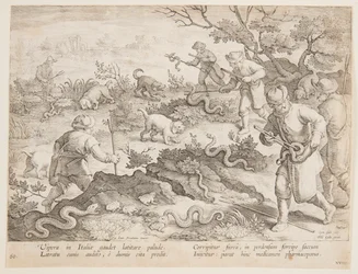 Schlangen jagen(Hunting snakes)after Jan van der Straet, called Stradanus(After),Cornelis Galle I(Engraver),Philips Galle(Engraver) |
